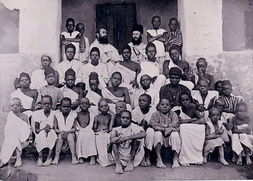 Despite frequent claims that it records the Martyrs of Uganda, this photograph probably depicts Tanzanian orphans.